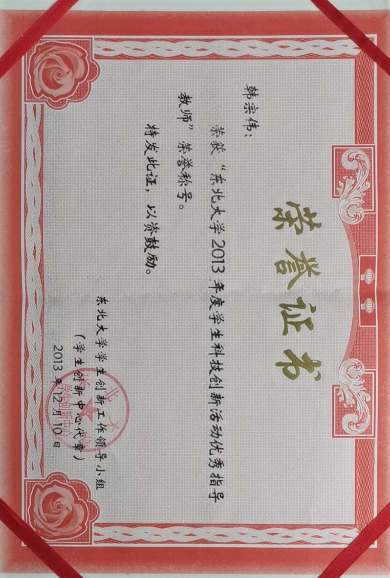 2013年度东北大学学生科技创新活动优秀指导教师